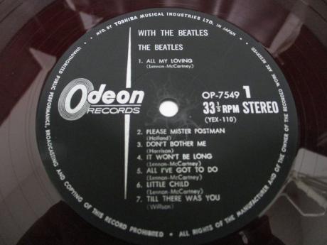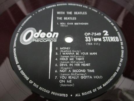 Description: This is scarce Japan TOUR Edition original copy ( released in 1966 ) of "With the Beatles". This album was originally issued in 1966 to commemorate their Japan tour. Insert is not originally issued for this item. Instead a booklet is originally inlayed inside gate-fold cover showing "Japanese liner notes", "English lyrics" & "Colorful photos of members". The disc is beautiful Odeon Red Wax, which rarely appears in the market in any condition. It’s very hard to find this copy in complete shape even in our country nowadays. Scarce item from Japan to serious collector.