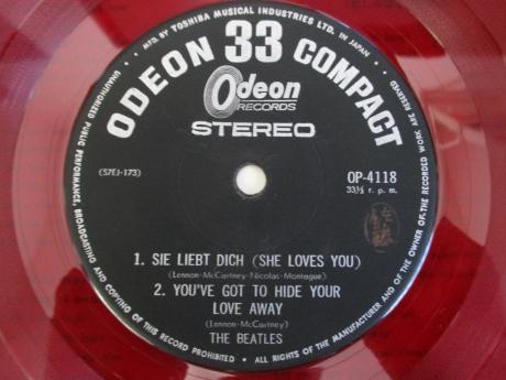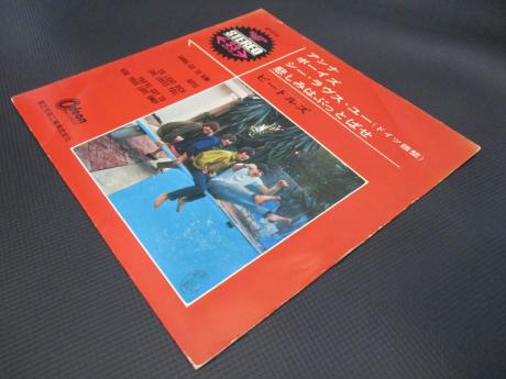 Description: This is scarce Japan Only 4 track EP ( released in 1966 ) of Beatles, coming with the insert. The PS is envelope in shape, with its top & bottom-rims flipped back. The insert shows the “English lyrics”. The disc is rare odeon red wax, issued for its 1st pressing. It's hard to find this copy in any condition nowadays. Scarce item from Japan to serious collector.
