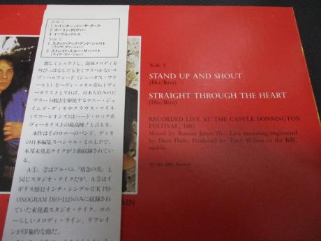 Description: This is scarce Japanese original 5 track 12” copy ( released in 1983 ) of DIO, coming with rare original obi. This Japanese copy includes 5 tracks, though UK 12” includes only 3 track ( See the track-list below ). The insert was not originally issued for this item. Instead, Japanese description is on the back side of obi, and English lyrics are on the back cover. It’s hard to find Japanese copy of this album even in our country. Scarce item from Japan to serious collector.